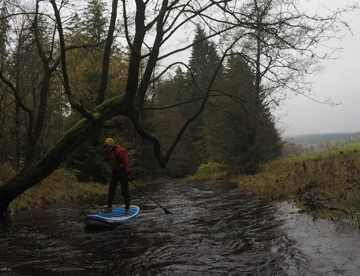 Dnes 18.7. byl padlý strom přes celou řeku asi 400 m před železničním mostem v Borači. Lépe přenést ...