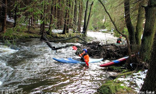 strom v Borači po povodni není, ale kolem Černvíru je několik stromů přes řeku ...
