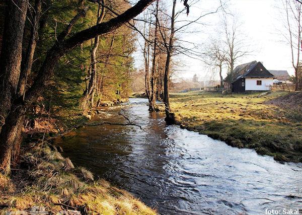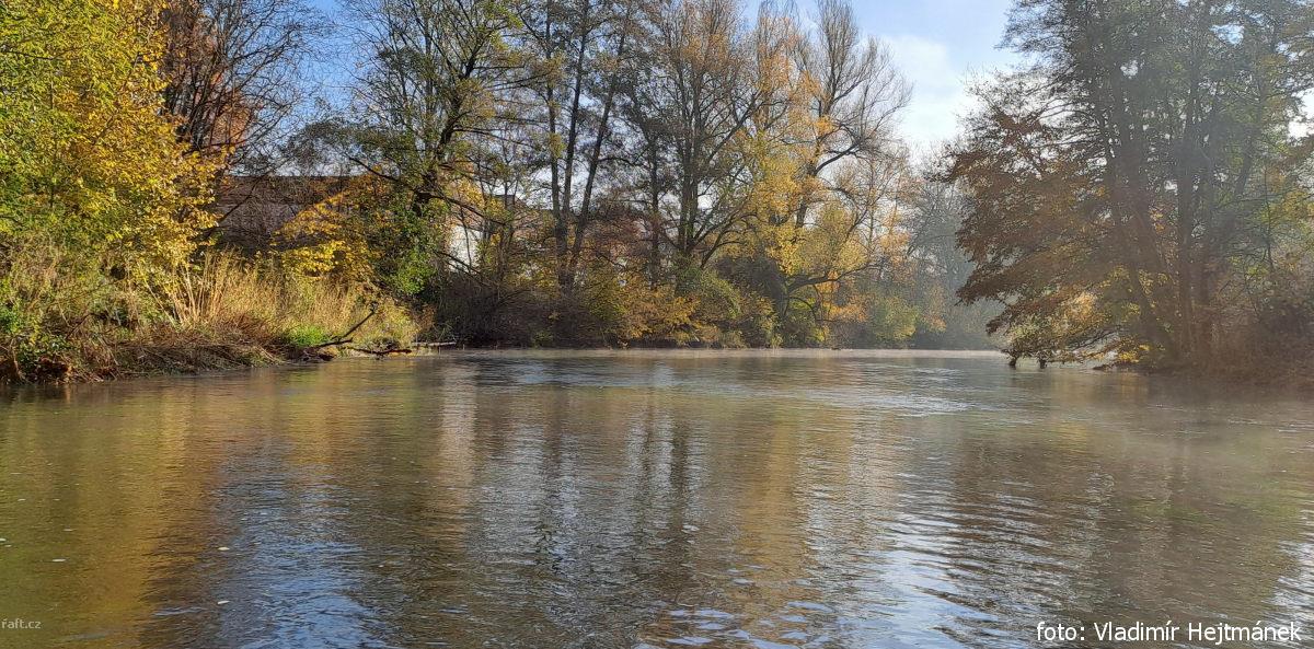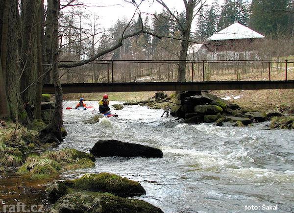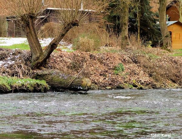 V dolním úseku, 3,5km pod jezem Březina, tedy v místě těsně za osadou Šárka kde řeka tvoří velký ost ...