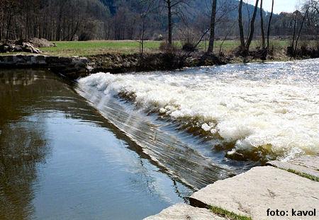 V dolním úseku, 3,5km pod jezem Březina, tedy v místě těsně za osadou Šárka kde řeka tvoří velký ost ...