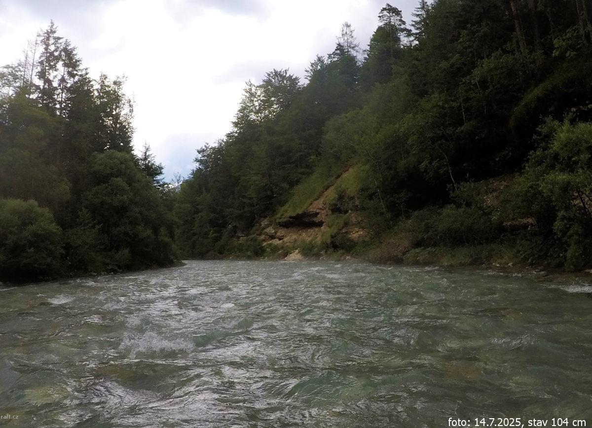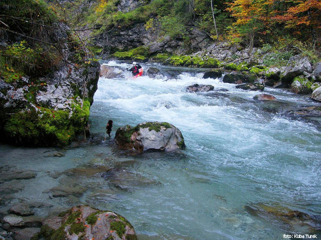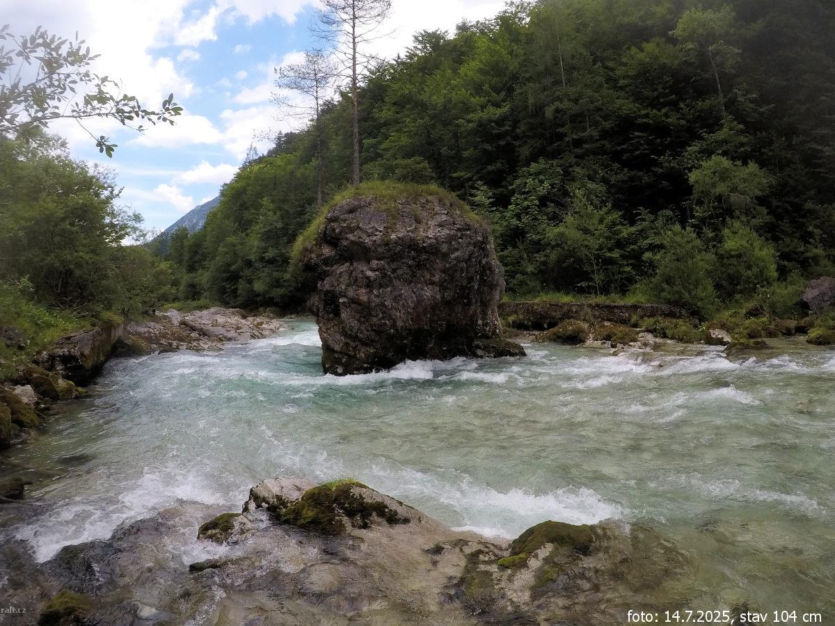 Asi dva kilometry před Steyrbrucke po přejetí peřeje pod mostkem za zatáčkou uprostřed řeky balvan z ...
