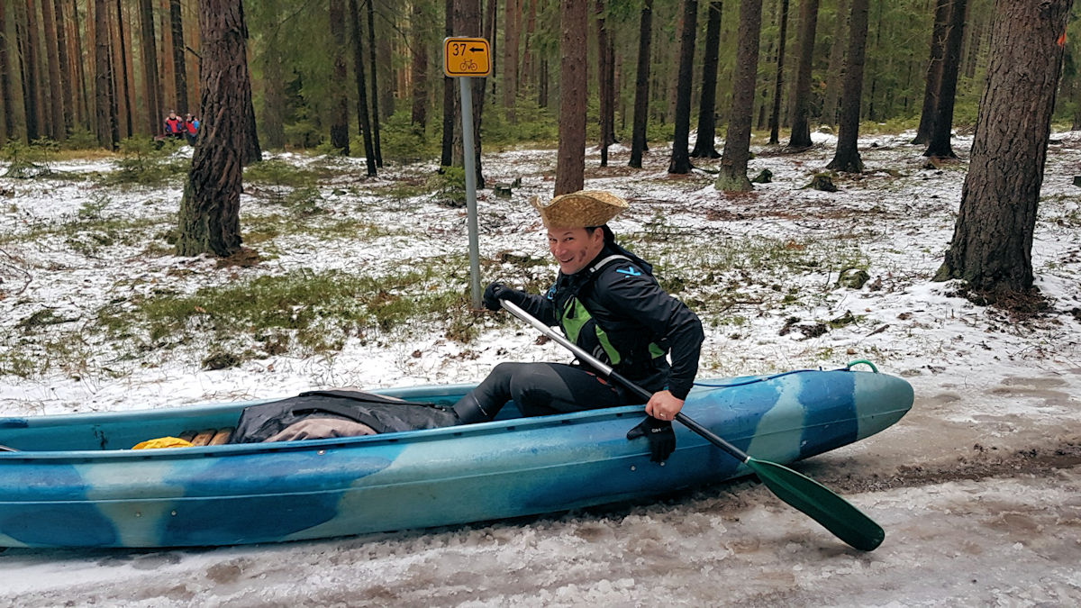 Takže nastává plán B – improvizace. Vytahujeme lodě před mostem a díky stále držícímu sněhu v lese je celkem dobře táhneme po lesní cestě až k cyklostezce č. 37. Tam voláme vrchnímu logistikovi s autem a vlekem a zakončujeme letošní ročník 5P. Celou akci hodnotíme jak veskrze podařenou, přestože do 5Plzeňských chybí smočení v Berounce a Úslavě. Věříme, že nám to obě dámy protentokrát prominou.