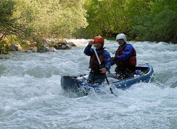Horní úsek s peřejemi WW IV jedou jen někteří z nás, ostatní čekají o 9 km níže, aby pokračovali s námi dál. Všichni jsme pak končili u silničního mostu těsně před přehradou nedaleko lázní. Střední úsek byl opravdu těžký, peřeje zde byly náročné. Jednu jsme přenášeli, protože už jsme neměli čas je dlouze procházet a prohlížet. Všechny se ale daly prohlédnout a popř. přenést. Jejich obtížnost dosahovala opravdu až WW IV. Ale jízda to byla nádherná. Celá řeka má kamenité koryto a teče zalesněným údolím. Dolní úsek je pak jednodušší, sem tam peřej s obtížností max. WW III, ale parádní jízda, velké vlny, přehledné peřeje. V jednom místě byl přes řeku padlý strom, ale ten byl vidět již z dálky a i ze silnice. Místo se dalo na nafukovačkách středem projet (museli jsme úplně zalehnout do lodi), nebo přenést po břehu. Jinak žádné záludnosti.