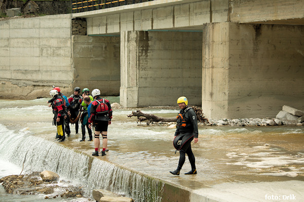 Většinu cesty jdeme podél vody a obtížnost řeky pozvolna stoupá. Posledních 500 metrů nevidíme, protože se cesta vzdaluje od břehu. K nasedačce to jde nějak víc a víc do kopce. Když se trochu opláchneme od potu a zašprajdujeme se, Venca se ptá Guliho na obtížnost.