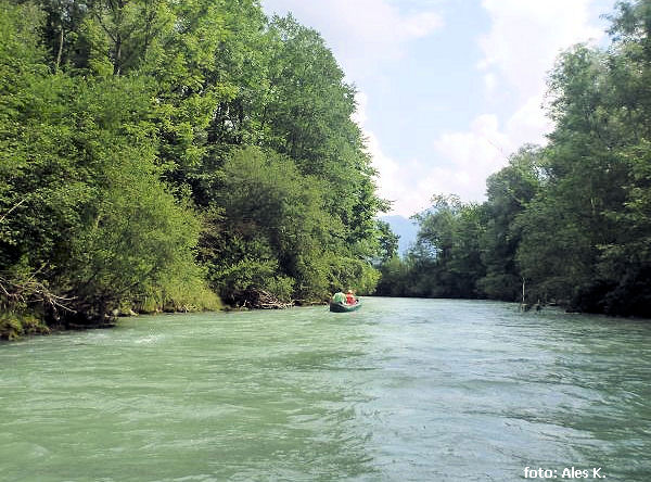 Za Eschenlohe se Loisach trochu zklidní, ale stále příjemně teče, takže pádlování je jedna velká radost. Civilizaci jen občas připomíná křížení se silnicí, dálnicí nebo železnicí. Řeka teče a cesta ubíhá. Po několika kilometrech míjíme stavidlo, které přepouští vodu z Loisachu vlevo do okolních mokřadů. Podle kilometráže je zde za vyšších vodních stavů nebezpečí nasání do stavidla a je třeba se držet vpravo. Za letních stavů, co jsme tu měli my, nepředstavuje stavidlo žádné nebezpečí.