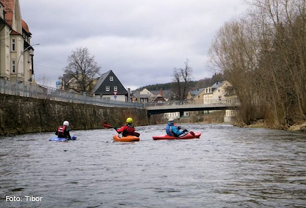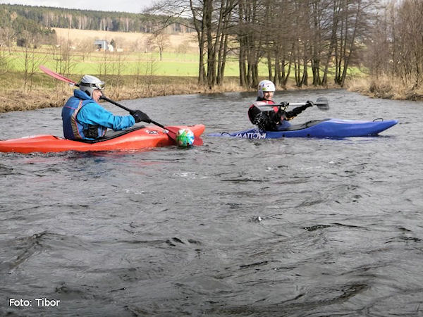 Vykukuje sluníčko a idylka pohodového výletu je dokonalá. V hravějších členech výpravy rozpoutává nález míče (pod Olbernhau se přeci jen nějaký bordel najde) sportovního ducha a dávají utkání v kanoepolu.