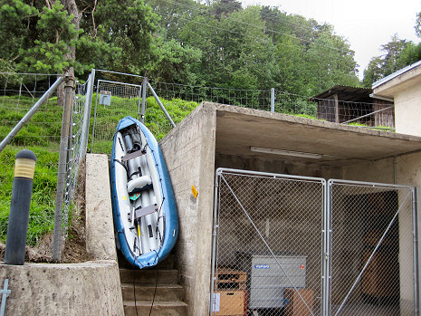 Dojedeme za zatáčku a tam opět jez. Výstup byl nad očekávání v pohodě, jenže jak se dostat zpět k řece? To snad ne, tady se nikde nedá sestoupit. Jez má výšku okolo 8 metrů, je obehnán regulačními zdmi a skalami a na břehu jsou ještě ploty místních zahrádek. Dobrá past je i zvednutá část stavidla, která na hladině před jezem vytváří docela solidní sifon.