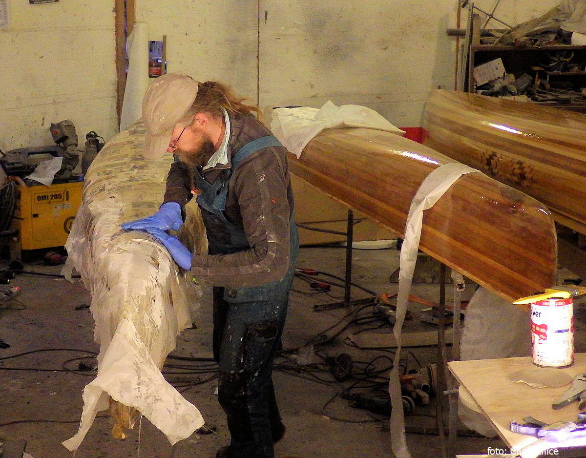 Cedrových lodí už jsem udělal několik a chtěl jsem zkusit něco nového. Léta mne zajímaly informace o starých kajacích s papírovým potahem. Nakonec jsem k tomu ale přistoupil po svém s využitím tradičních technologií využívaných v divadle. Dávno před nástupem laminátu se dělaly samonosné skořepiny menších kulis a rekvizit vrstvením papíru a lepidla, dříve nějakého klihu nebo škrobu.