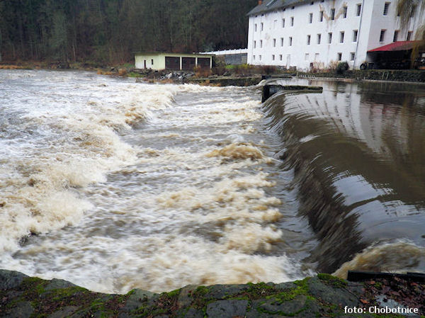 Já vzhledem k okolnostem všechny jezy přenesl. Neměl jsem loď vhodnou pro divokovodní hrátky, jel jsem sám a bylo chladno. Ale i peřej pod Benešovým mlýnem nebo pod Kvěchovým nebo Matoušovským stála za to a spolu s nájezdem do rychlého proudu od břehu prověřily, jestli jsem nevyšel ze cviku. Tady mám ještě jednu poznámku: do řady zavřených šlajsen teklo s rezervou dost vody na to, aby se do nich dalo i přes zábranu s lodí skočit. Ale ve šlajsně se za tohoto průtoku tvořily velké a strmé válce, samozřejmě ohraničené kolmými stěnami, ze kterých by pro běžného vodáka nebylo úniku ve zdraví. Přitom 30 kubíků, to není žádný závratný průtok. Či-li jde o to prohlížet jezy a nevjíždět kam nevidím.