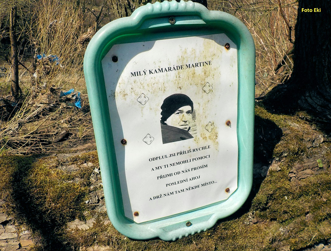 Aby bylo jasné, že počet utonulých na nebezpečném jezu není jen číslo, stojí pro výstrahu v podjezí nerezový kříž s fotkami dvou kamarádů, kteří tu definitivně skončili 19. ledna 2008.