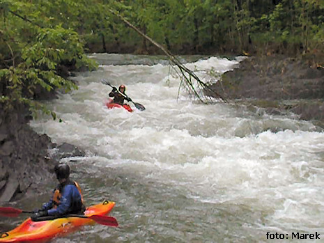 Scházíme se jak švábi na pivo. Domlouváme strategii jízdy, neboť dost spěchám. Nakonec jsme 4 kajakáři a nasedáme u Salajky v Horní Lomné.