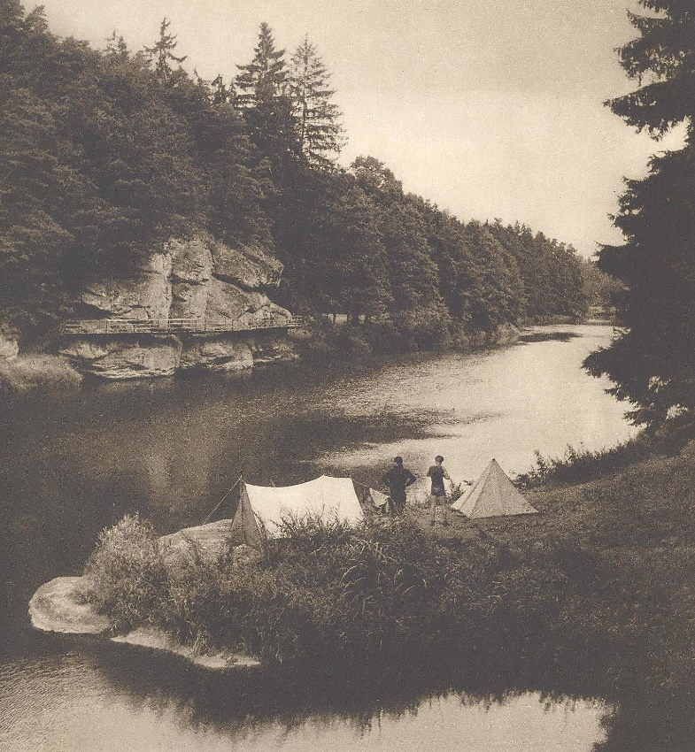Táboření na Lužnici u ústí Židovy strouhy (L. Sitenský: NA ŘEKU…! 1957)