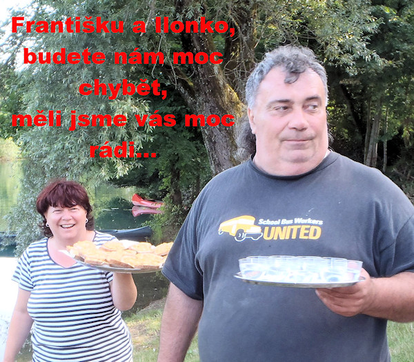 Tvořili ideální dvojici, která ráda jedla, pila, radovala se a bylo jim přes padesát. Jednoho dne na podzim mi přišla SMS: „Dnes v noci mi umřela Ilonka. Ozvu se. Zapalte si, prosím svíčku za její dušičku.“ Zemřela náhle v noci během pár minut než přijela záchranka. Volal mi a opět jsem slyšela jeho „ to nepochopíš!“ Cítili jsme s ním, ale pomoct nemohli. Asi za měsíc František vystupoval na plese, pozval nás, vzpomínali jsme všichni a bylo nám do breku. František vypadal v pořádku, smutný, ale držel se. Zrovna jsme sestavovali vodácký plán na léto a přemýšleli, jestli Franta zvládne cestu do Moldávie bez pečující Ilonky a za dva dny poté mi opět přišla smutná SMS od kamaráda: „Dnes v noci zemřel František na zástavu srdce.“ Přežil Ilonku o tři měsíce. Asi mu bez ní bylo smutno.