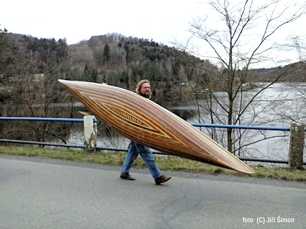Vše plynulo v klidu, až před Cholínem se zatáhlo a začalo foukat víc. Naštěstí plovačku jsem měl od rána pro jistotu na sobě. Ale když jsem se vydal na travers přes řeku a najednou začalo hustě sněžit a vítr ohýbal borovice na břehu a hnal Cedrofku ohromnou rychlostí přes vlny, měl jsem z toho takové jaksi smíšené pocity. Naštěstí to dopadlo dobře a v zátočině pod Cholínským mostem jsem přečkal, než se živly trochu uklidnily, pak jsem shrnul sníh z lodě a věcí a vyrazil dál do mého cíle v Kamýku nad Vltavou.