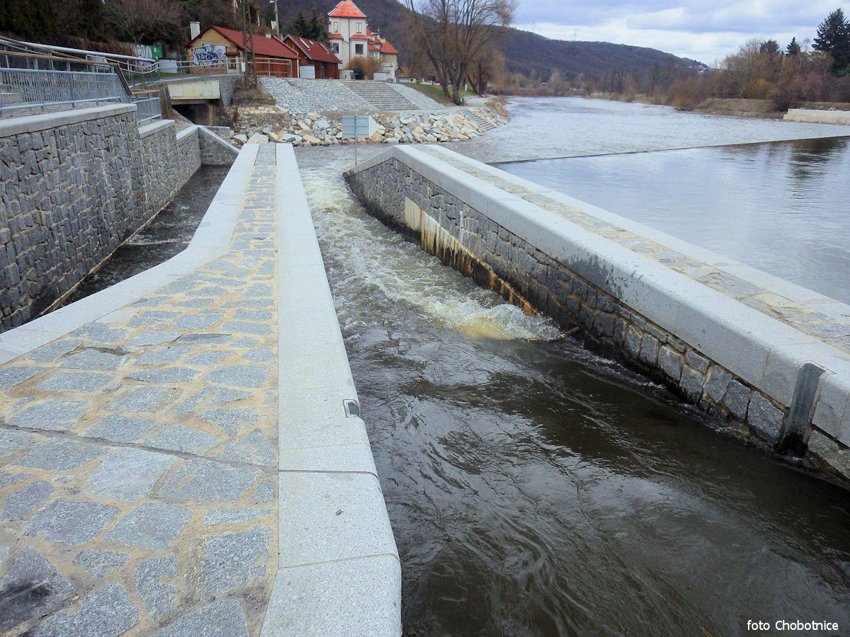 jez s propustí vpravo přenést vpravo vysoký (m) 1,1 náhon vpravo, nesjízdné, !! (štěrková propust uzavřena, jez je nesjízdný) 1,5 km |