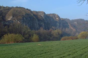 nouzové tábořiště Alkazar vlevo, lom Alkazar vlevo, vápencové skály vpravo, 0,3 km |