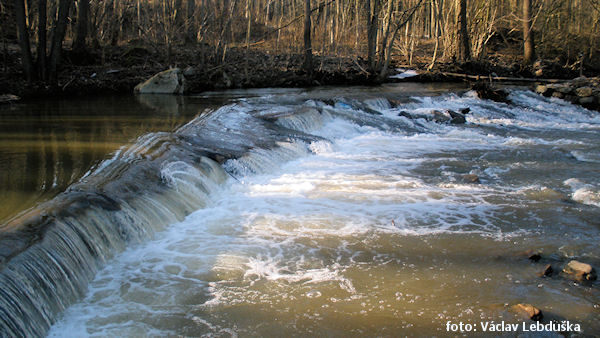 jez přenést vlevo vysoký (m) 1,0 Mlýn I. Hermanna za určité vody sjízdné !!, konec přírodní rezervace Doubravské údolí 0,4 km |