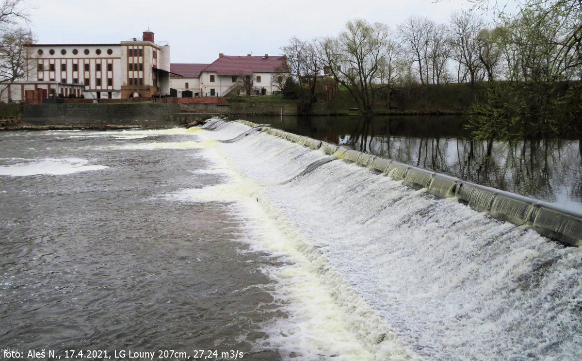 r.km 54,0 Jez Jiráskovy mlýny, 18.4.2021, 29 m3/s na LG Louny
