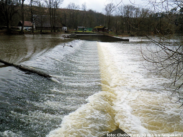 jez s propustí vpravo přenést vpravo vysoký (m) 1,0 náhon vl!! (nově zrekonstruovaný jez se sportovní propustí u pravého břehu) Podělusy vlevo, Chrást vp 0,9 km (GPS: 49.83887507,14.575595856) |