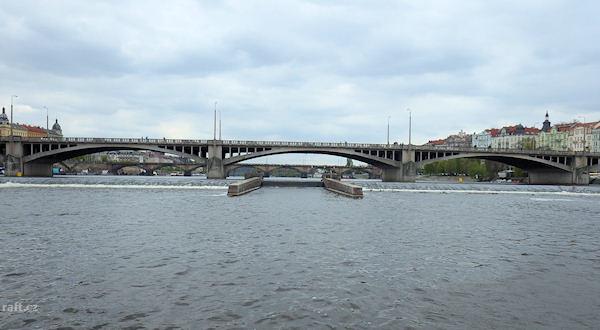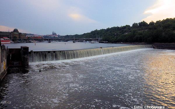 r.km 53,1 Staroměstský jez v pozadí s Karlovým mostem