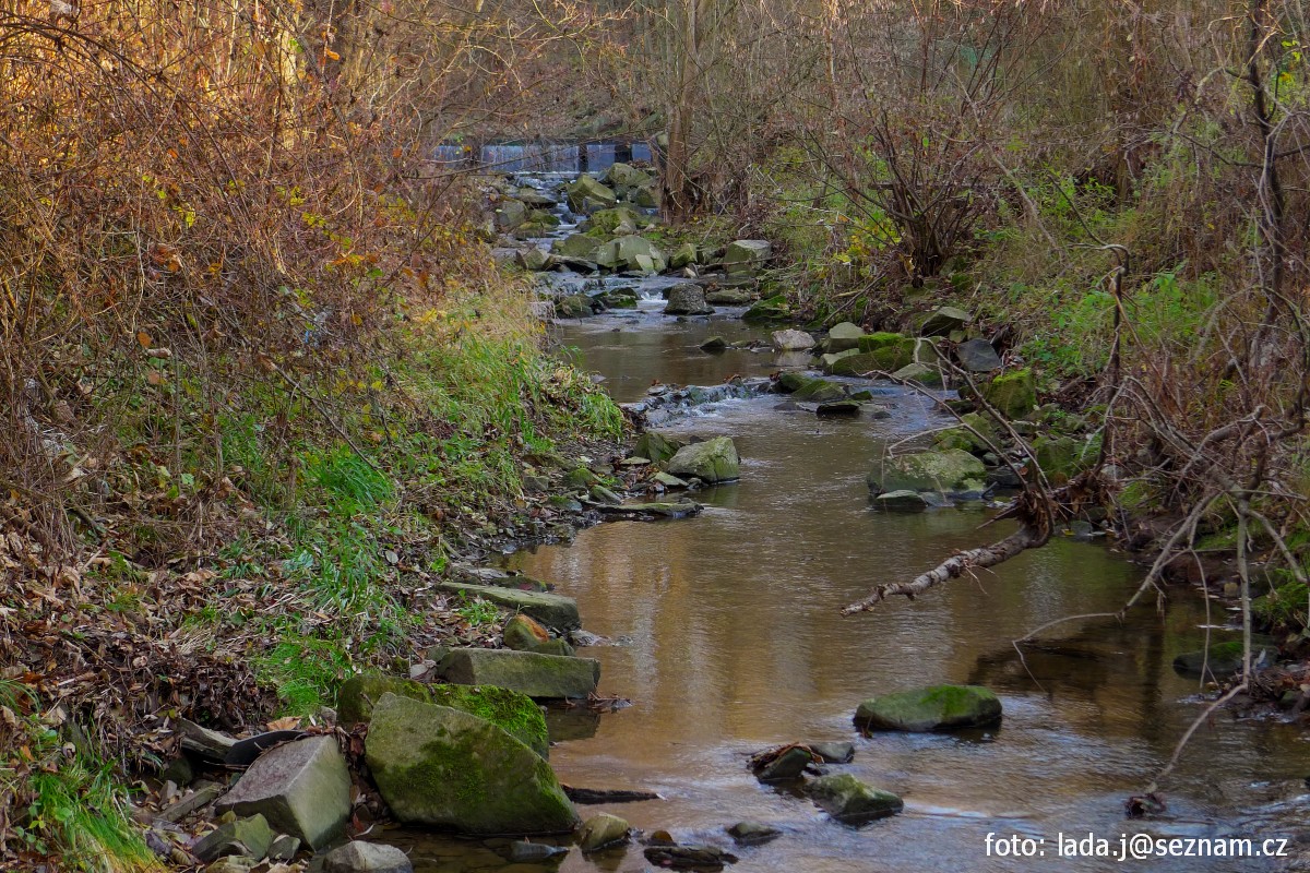 kamenný jez (okolo limitu přetáhnout korytem) a následuje za 200 m přítok vlevo Horský potok 0,9 km |
