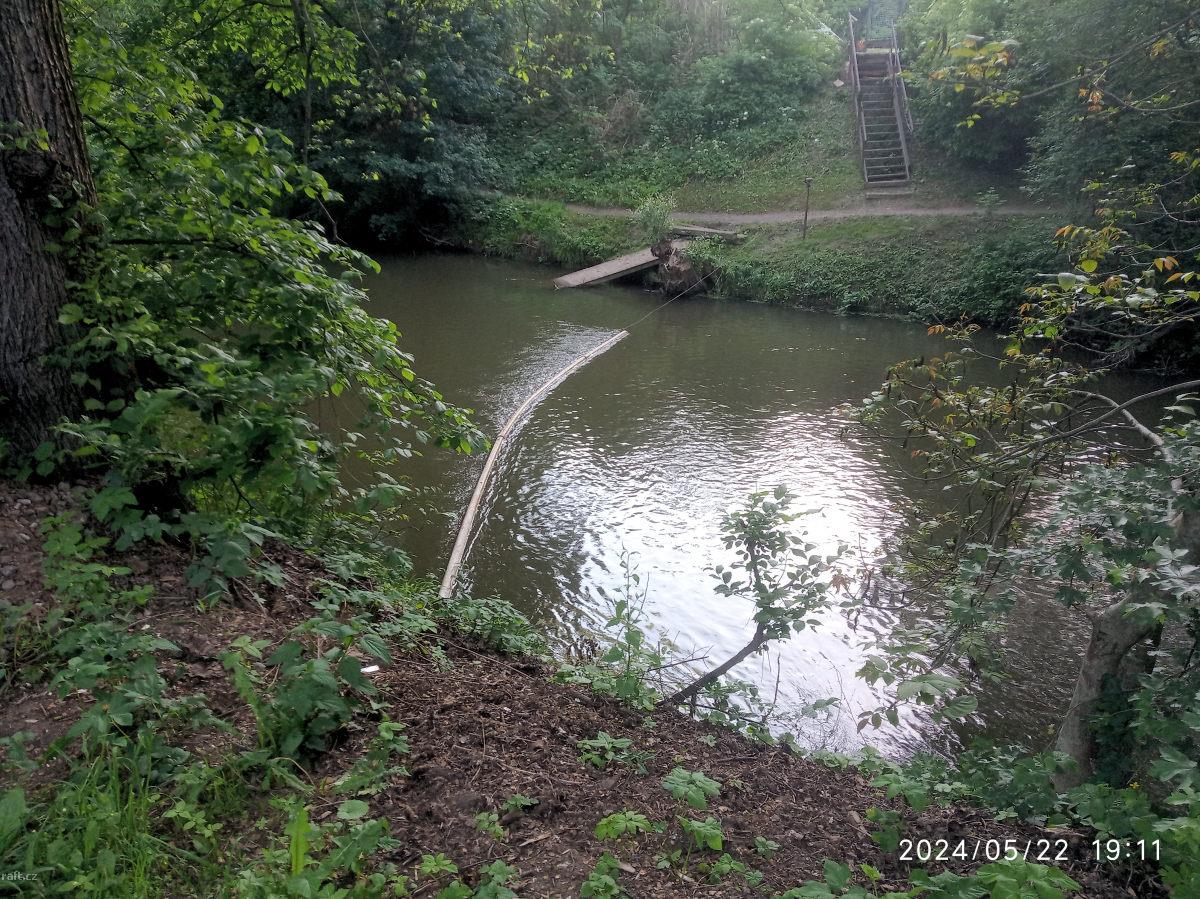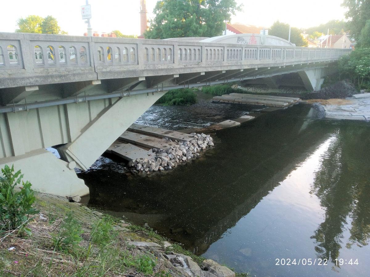 Pozor před Maloměřickým mostem je nově vyskládaný brod z betonových panelů, jejich pozice se mění v ...