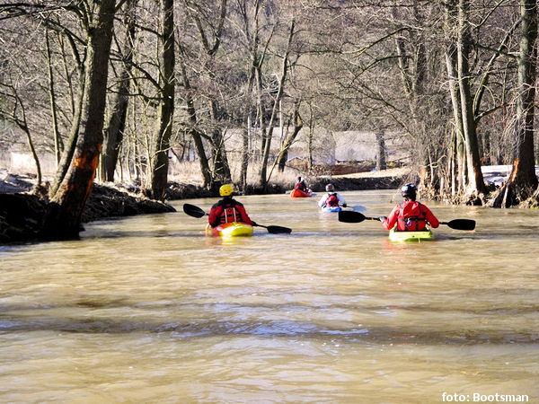 jez náhon dlouhý 400 m - lze jet rovně náhonem a po 300 m odlehčovacím kanálem zpět do řeky 0,6 km (GPS: 49.709249,16.873316) |