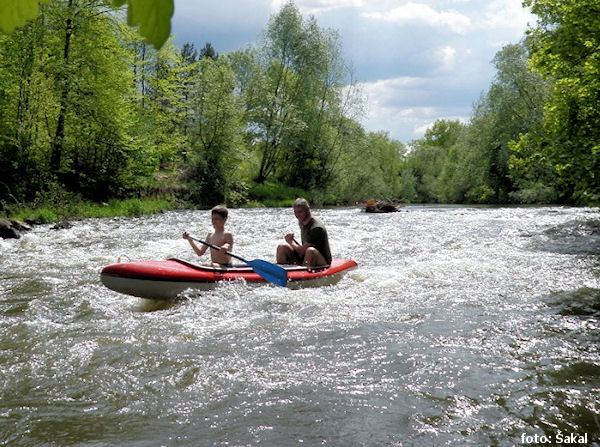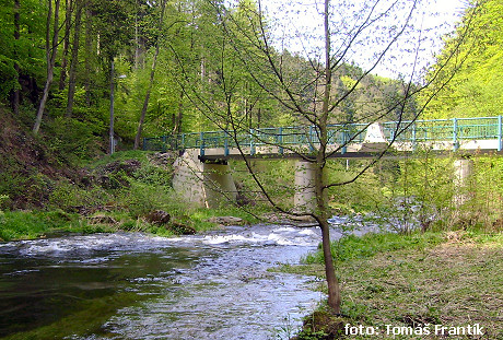 most pěší nebo lávka jez přenést vlevo přírodní nebo historická zajímavost Orle Skaly vpravo, slalomová trať 0,8 km |