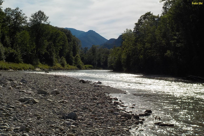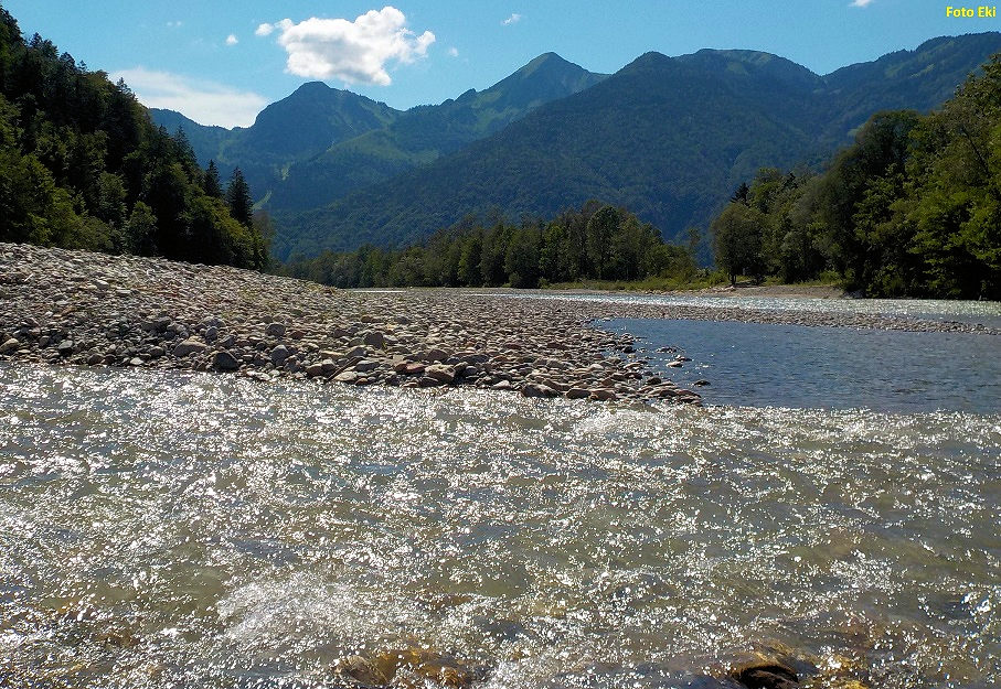 řeka opouští Rakousko (Tirolsko) a vtéká do Německa (Bavorska). Odsud až po km 22,1 zákaz výstupu na břeh. 2,9 km |