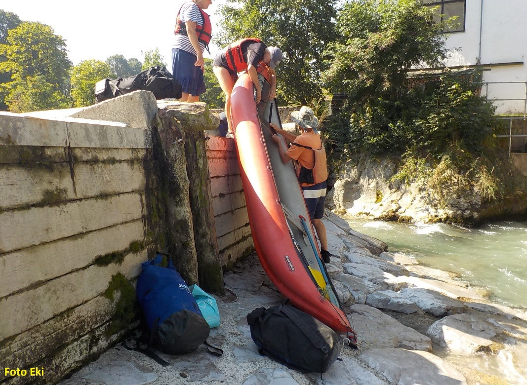 most silniční Kössen vpravo, obvyklý začátek plavby,  1,2 km |