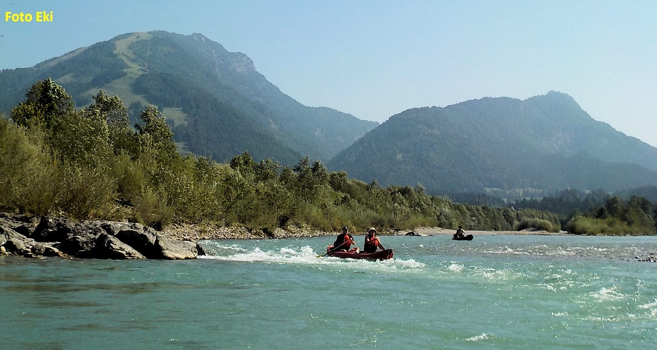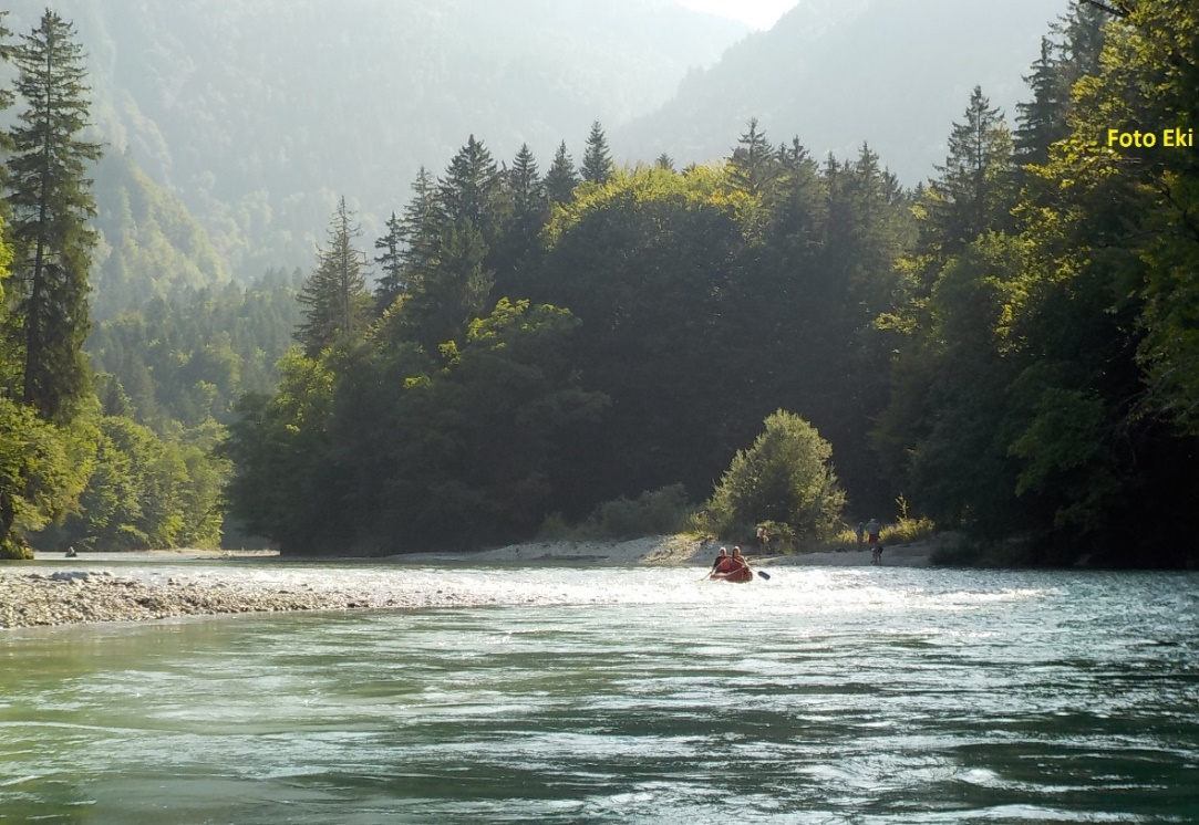 řeka opouští Rakousko (Tirolsko) a vtéká do Německa (Bavorska). Odsud až po km 22,1 zákaz výstupu na břeh.  2,9 km |