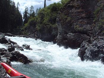 v pravé zatáčce následuje opět 100 m dlouhá, mohutná peřej WW III-IV. Dále